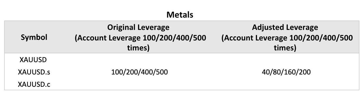 If your account’s leverage is at 1:500 leverage, then the leverage for XAUUSD will be at 1:500. Hence, during the FOMC meeting period, your leverage will be at 1:200.