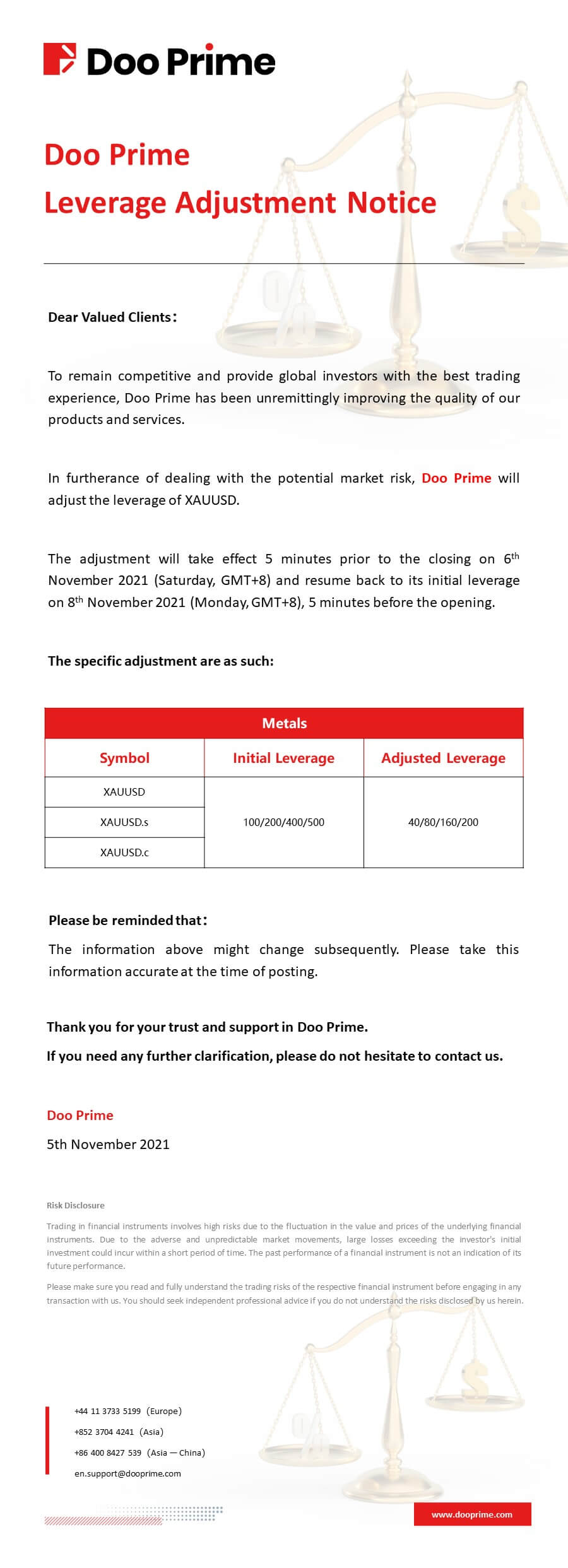 2021-11-05 | Leverage Adjustment Notice