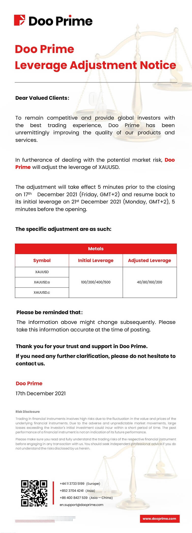 2021-12-17 | Leverage Adjustment Notice