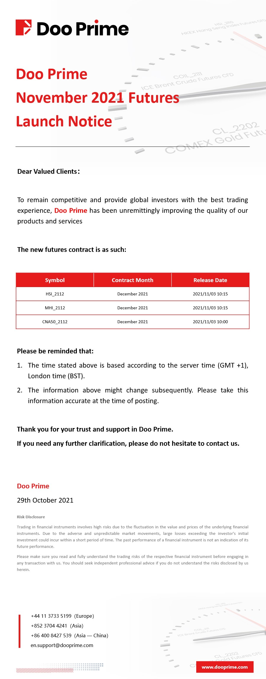 Doo Prime November 2021 Futures Launch Notice