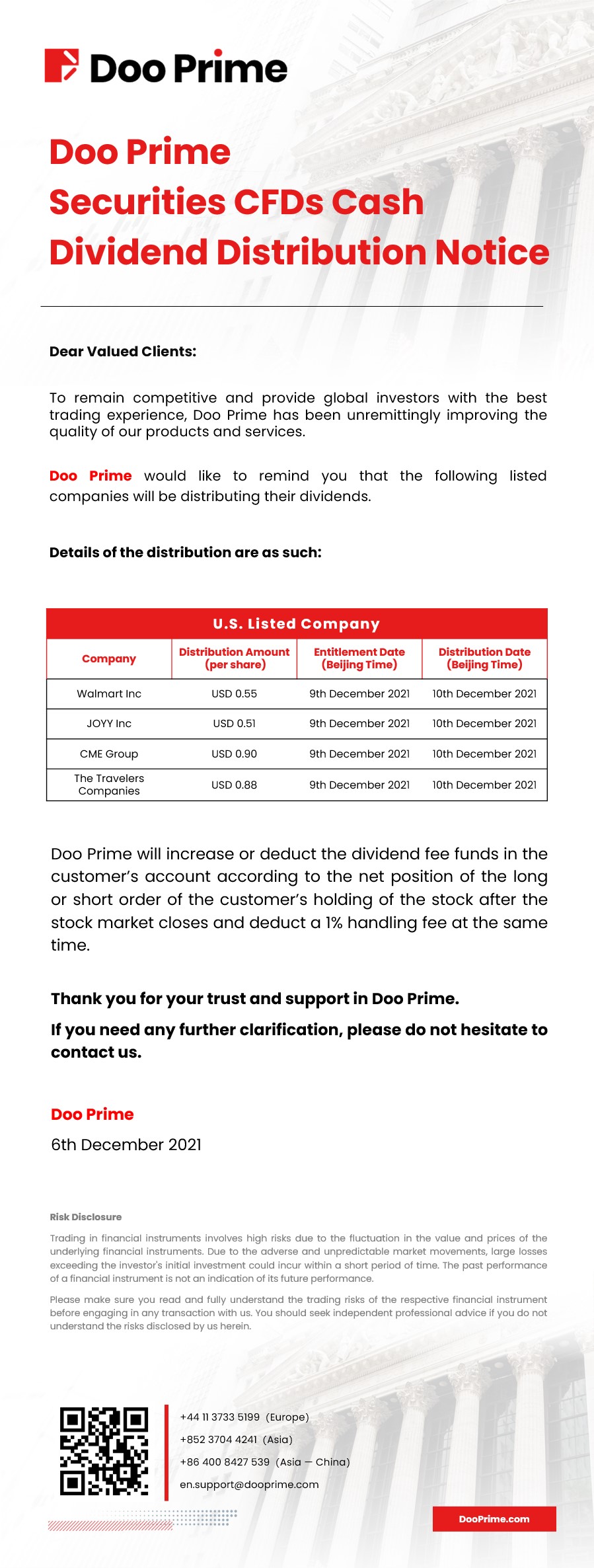 Doo Prime Securities CFDs Cash Dividend Distribution Notice