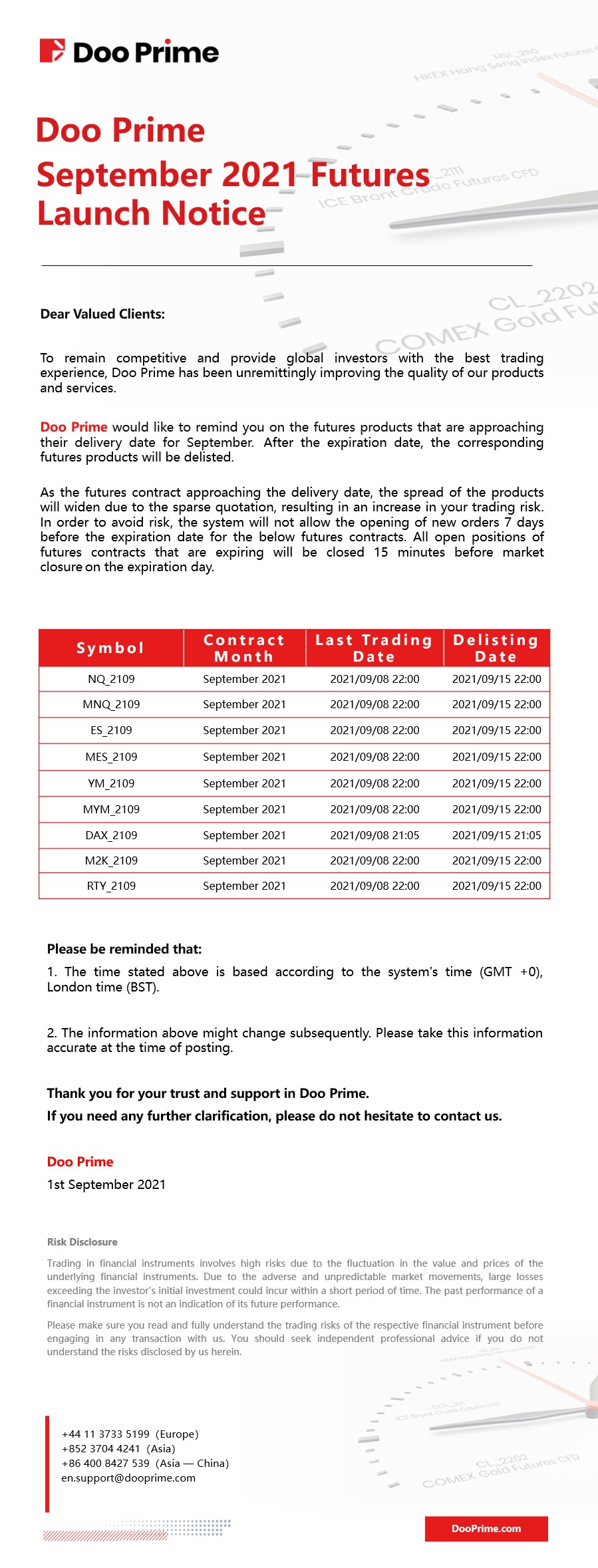 Doo Prime September 2021 Futures Launch Notice