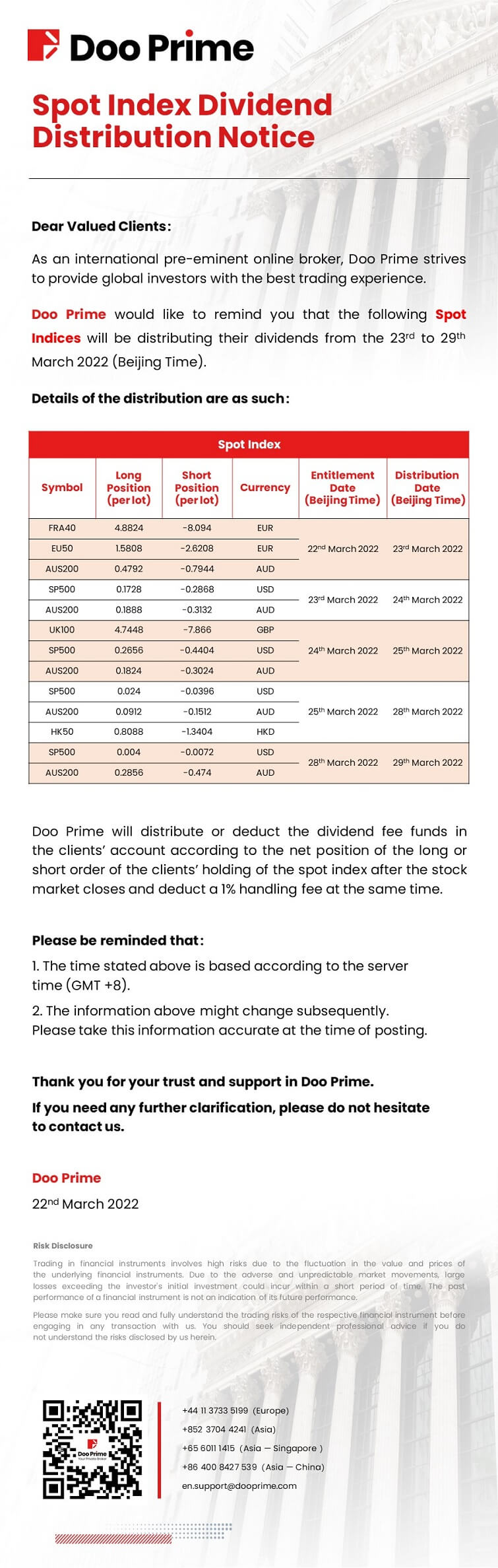 2022-03-23 | Dividend Distribution Noitce , Spot Index
