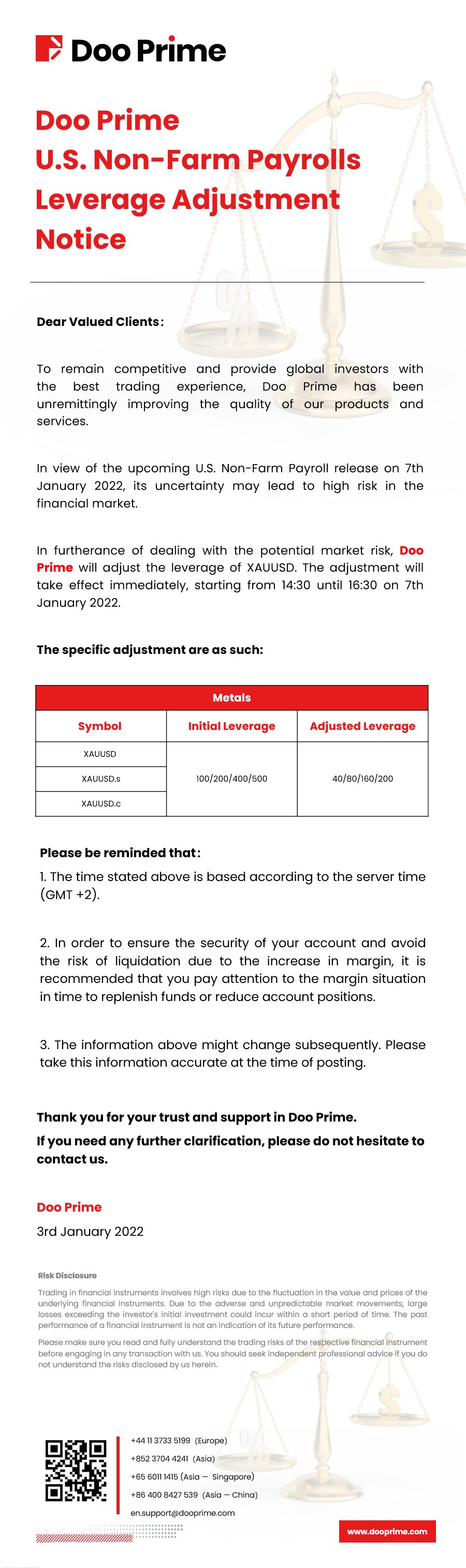 2022-01-03 | Leverage Adjustment Notice , U.S. Non-Farm Payrolls Leverage Adjustment
