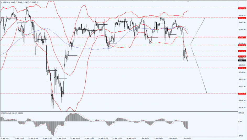 Today, we pay attention to the direction of the Dow on the 35226 line. If the Dow does not recover to the top of the 35226 line, it will maintain a bearish trend. Next, focus on the support strength of the two positions of 35110 and 34990 below, as well as the 35308 line above.