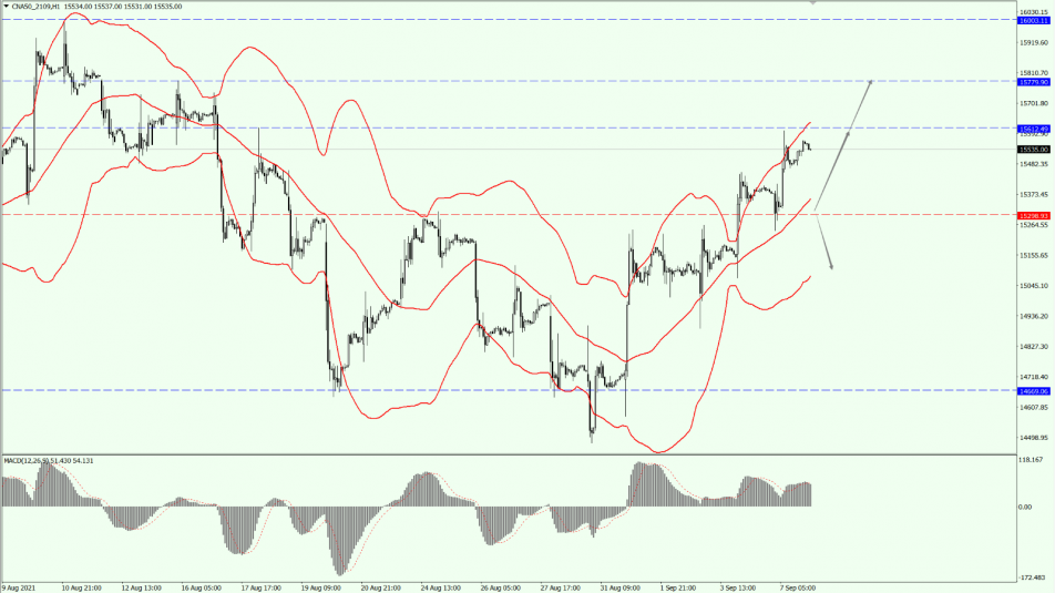 Today, on A50, pay attention to the support of the 15298 line. As long as A50 runs stably above the 15298 line, pay attention to the suppression strength of the 15612 line. Then, focus on the support of the lower Bollinger Band below.