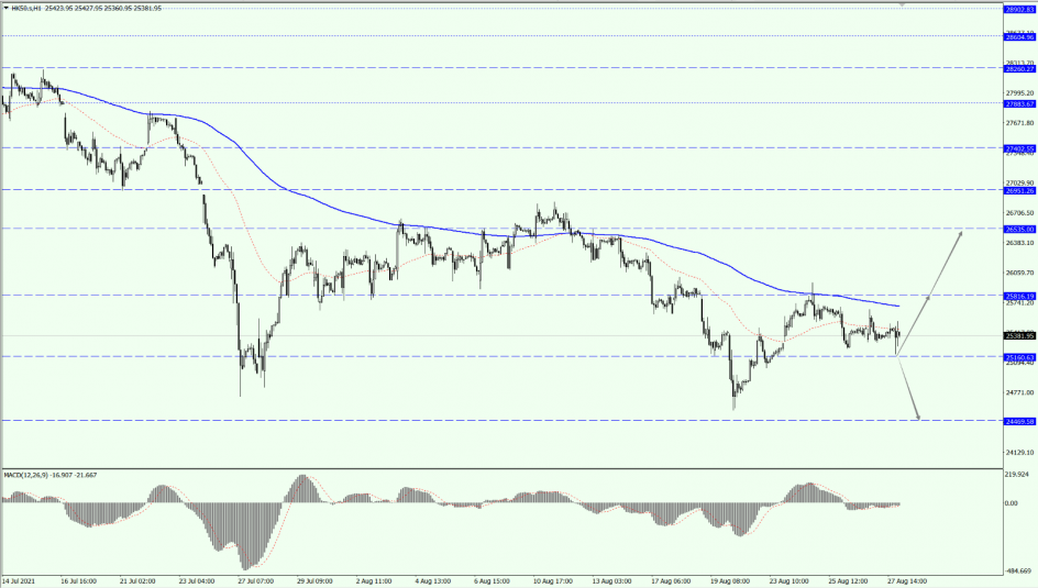 HK50 is focusing on the 25160 line today. If you get a strong support for buying above the 25160 line, then pay attention to the suppression strength of the two positions of 25816 and 26535.