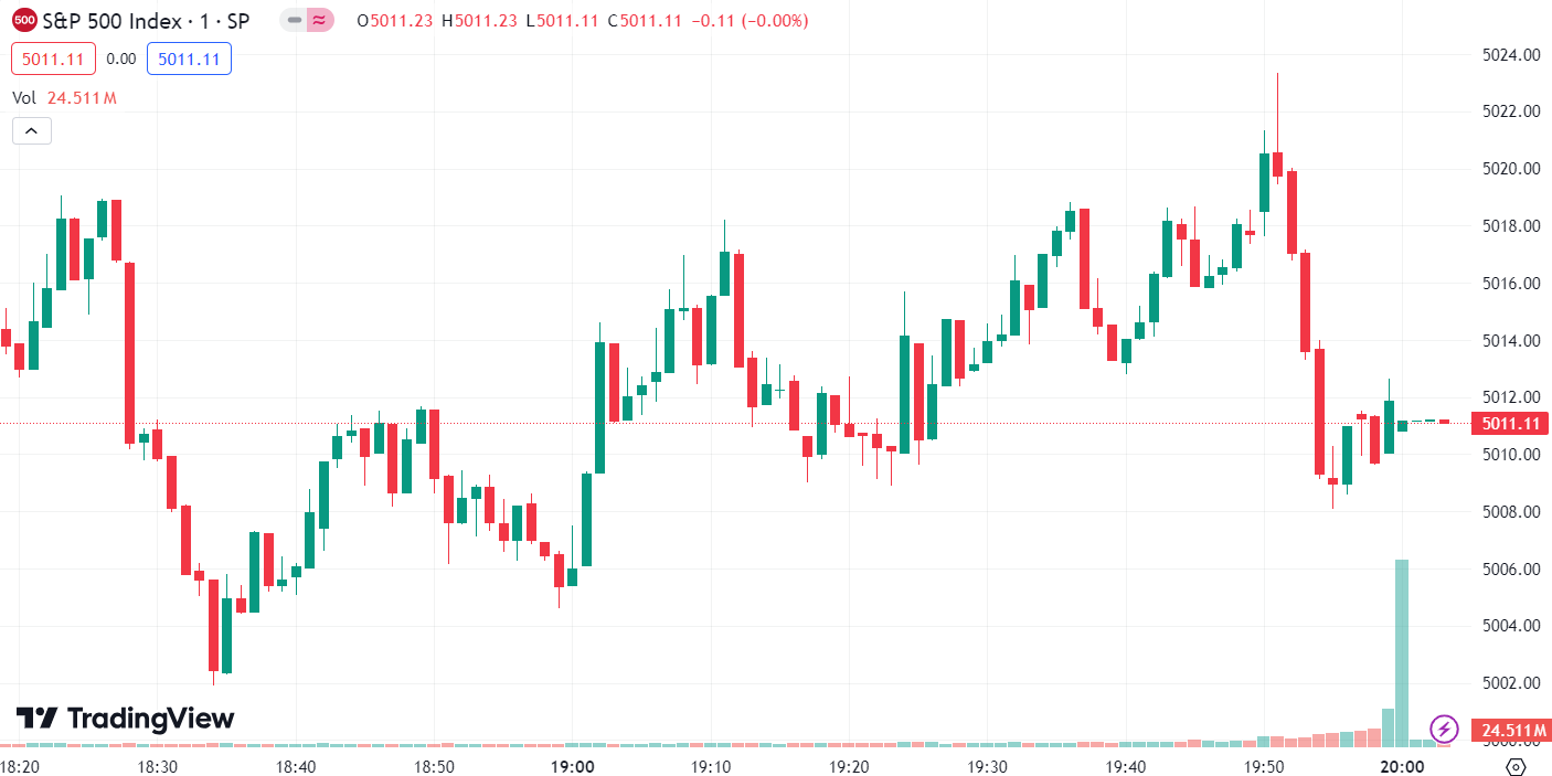 • S&P 500 declined by 11.09 points or 0.22%, to 5,011.12.