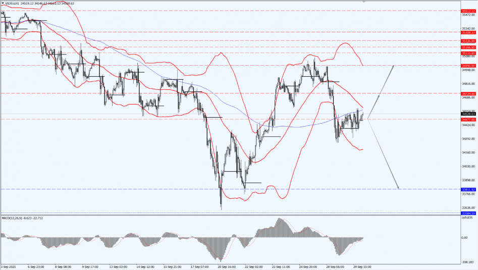 Today, we pay attention to the 34477 line. If the Dow is below the 34477 line, it will maintain a bearish trend. At that time, focus on the support of the 33811 line below. If the Dow is above the 34477 line, then watch its rebound strength, as well as the suppression strength of the two positions of 34724 and 34990.