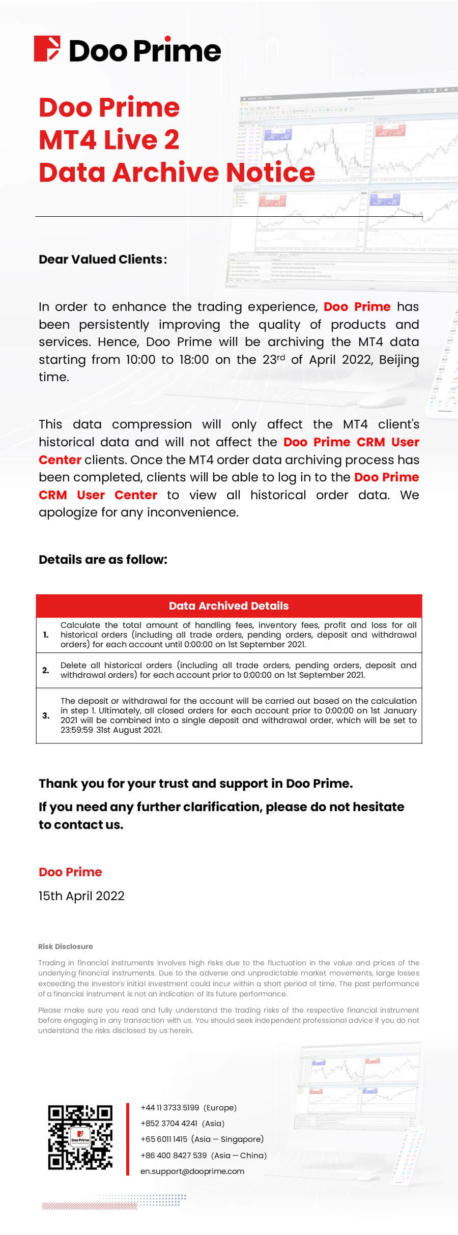 Doo Prime MT4 Live 2 Server Data Archived Notice