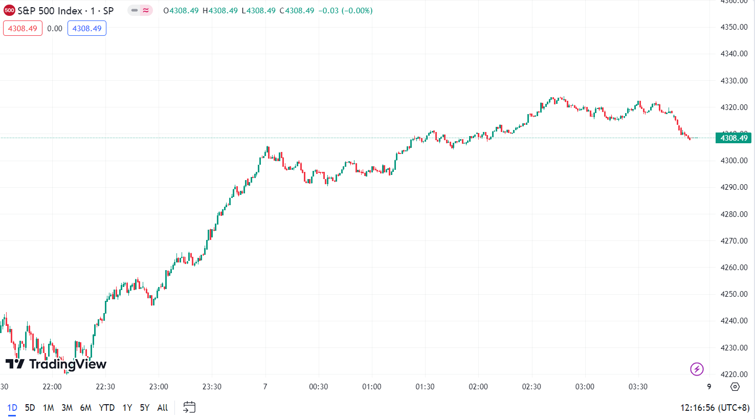 - S&P 500 Index rose 50.31 points, an increase of 1.18%, closing at 4,308.50 points.