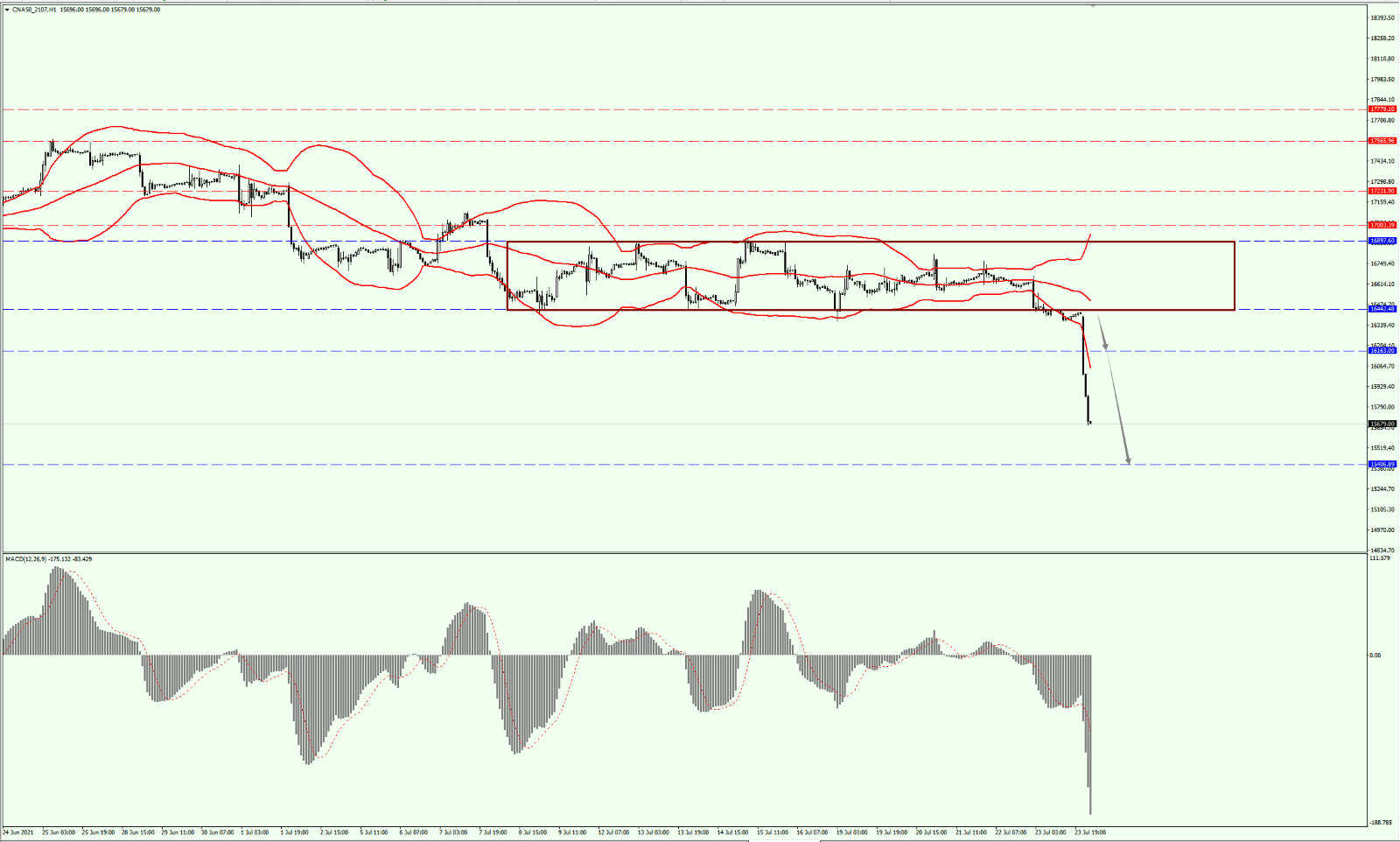 A50 dived sharply after falling below the 16442-line as expected. Today, continue taking the bearish trend as the main insight. Meanwhile, also focus on the support of the 15406-line.