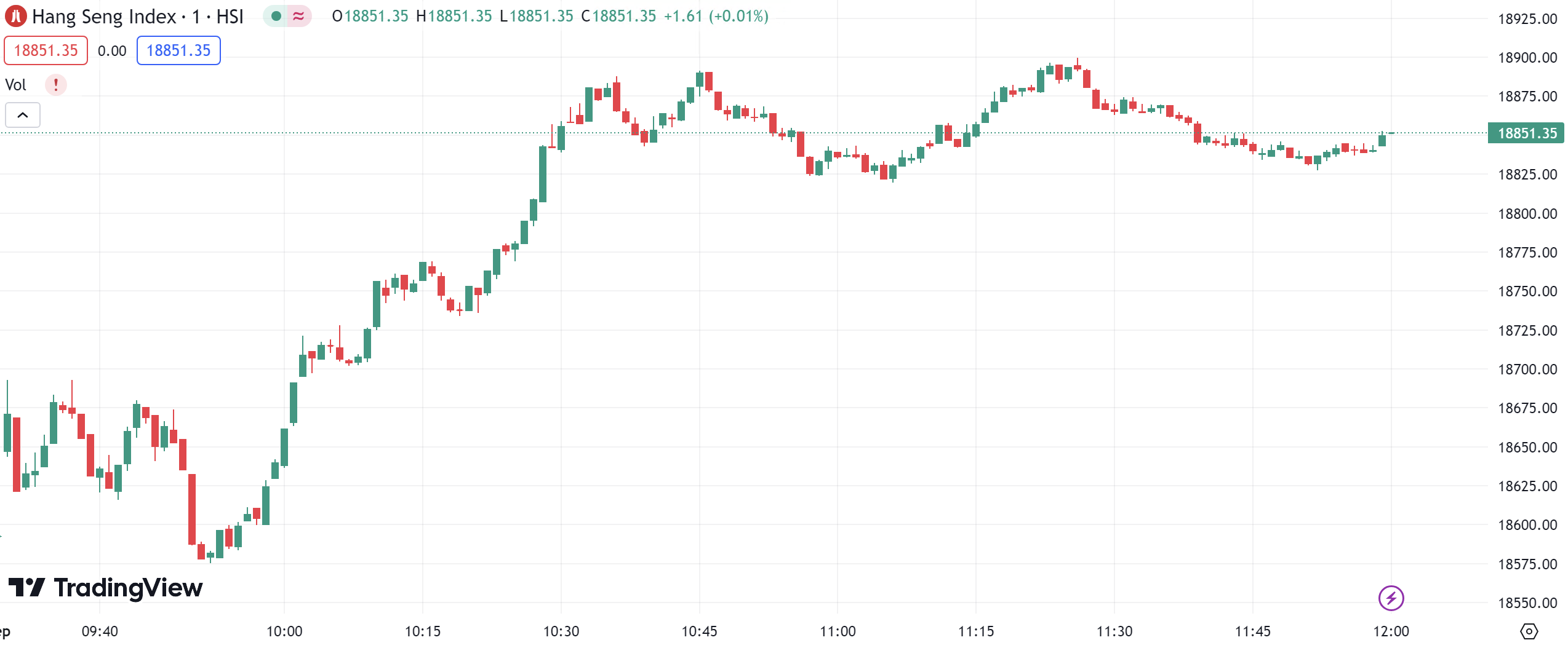 They opened with a gain of over 210 points, momentarily narrowing to a 193-point increase, with the Hang Seng Index reaching a low of 18,575 for the day.