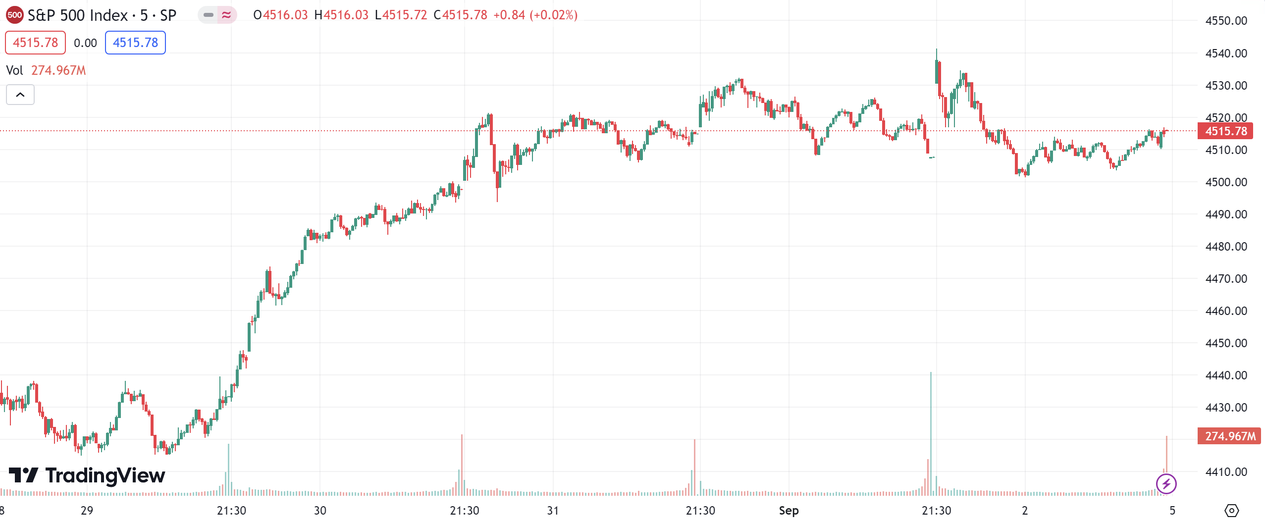 Average hourly earnings in August increased by 0.2% compared to an expected 0.3%, with a previous value of 0.4%. Year-over-year, hourly earnings in August increased by 4.3%, matching expectations and slightly down from the previous 4.4%.