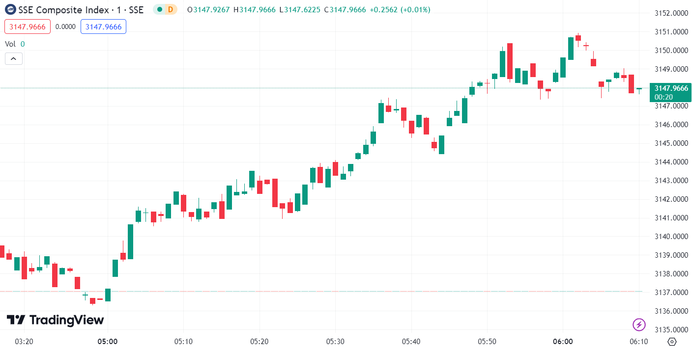 - Shanghai Composite Index (SHCOMP) dropped 0.13% to 3,136.62 points.