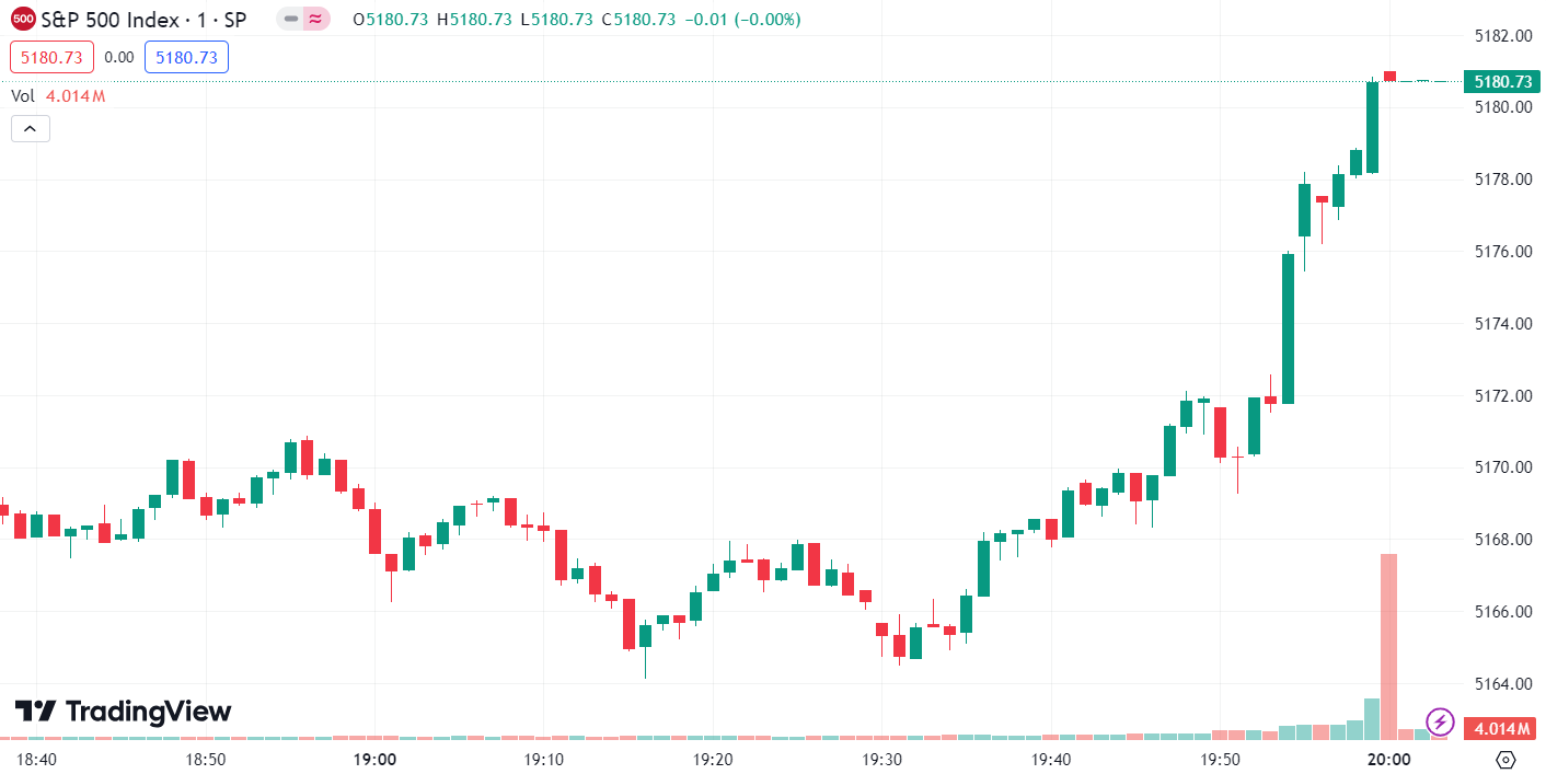 - S&P 500 climbed 45.81 points, or 0.91%, ending the day at 5,064.30.