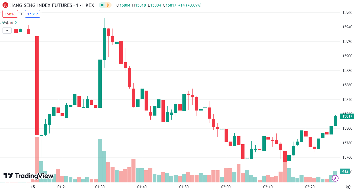 - Hang Seng Index (HSI) rose 0.43% to close at 15,947.63.