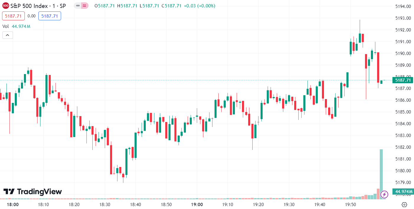 - S&P 500 rose by 6.96 points, up 0.13%, to 5,187.7.