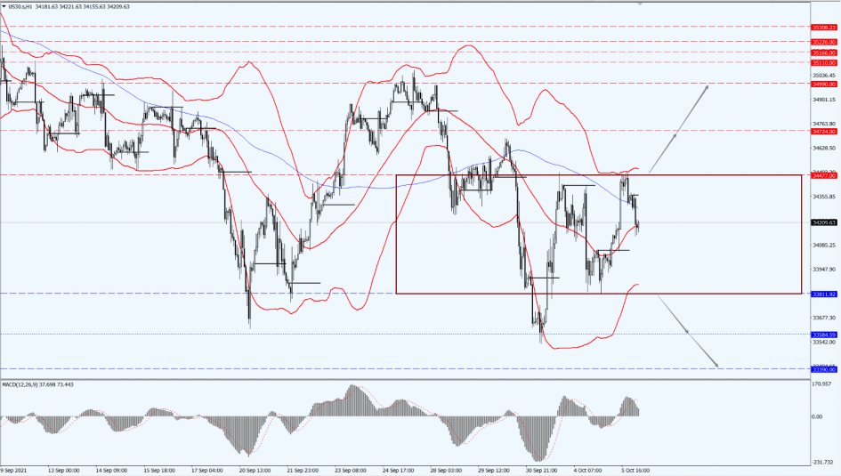 Today, we pay attention to the breakthrough direction of its shock range from 33811 to 34477. If it breaks through the 34477 line, it will open up further upward revision, and then focus on the suppression strength of the 34724 and 34990 positions. If it falls below the 33811 line, it will open up further downward revision. At that time, shift your attention to the support of the 33584 and 33390 positions.