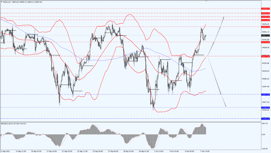 The Dow is focusing on the 34477 line today, and above this line, pay attention to the suppression strength of the 34724 and 34990 positions. Once the Dow falls below the 34477 line, it will test the support of the 33811 line again.