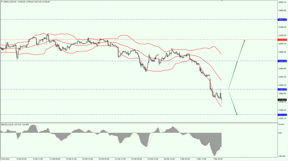 FTSE China A50 pays attention to the 13983-line today. If the A50 runs steadily below the 13983-line, then pay attention to the support of the 13371-line. If the A50 breaks above the 13983-line, it will open up further upward trend. At that time, pay attention to the suppression strength of the 14669 and 15184 positions.