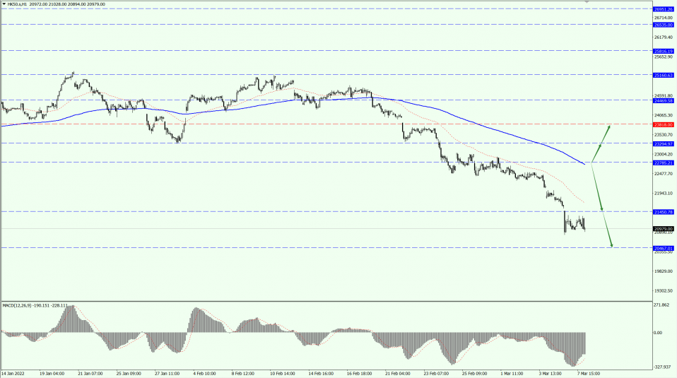 HK50 Index focuses on the 22785-line today. If HK50 can run stably below the 22785-line, then pay attention to the support of the 20467-line. If the HK50 rebounds above the 22785-line, then pay attention to the suppression strength of the 23294 and 23818 positions.