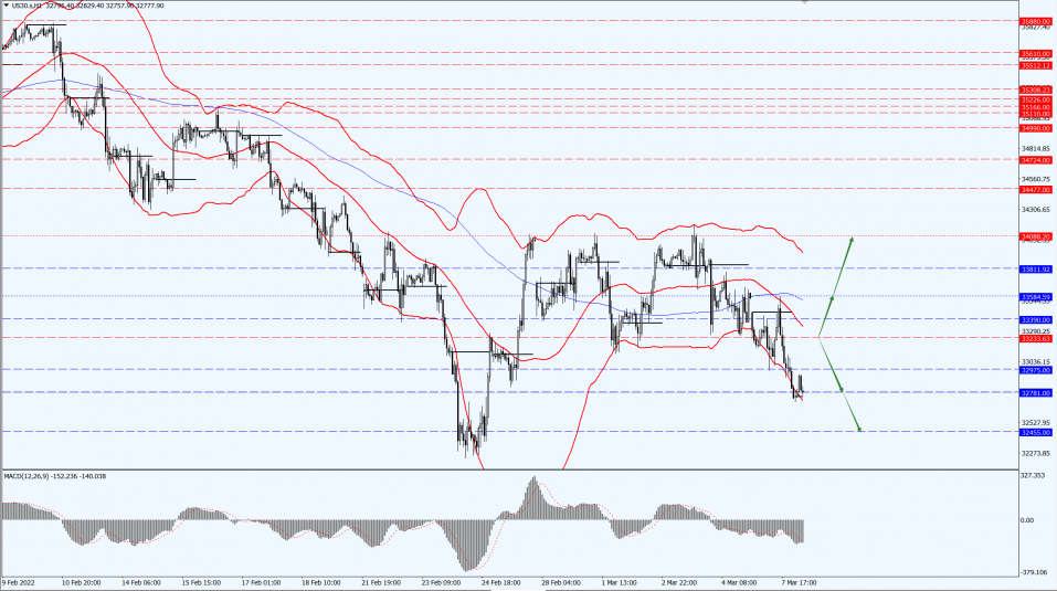 The Dow focuses on the 33233-line today. If the Dow runs stably below the 33233-line, it will pay attention to the support strength of the 32781 and 32455 positions. If the Dow breaks above the 33233-line, it will pay attention to the suppression strength of the 33584 and 34088 positions.