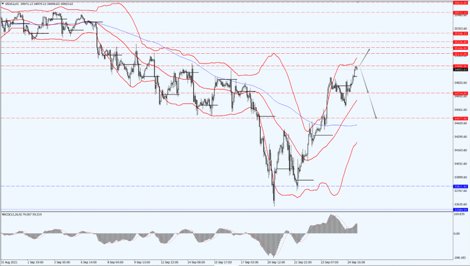 The Dow today pays attention to the 34990 line. Once the pressure is down, focus on the support strength of the 34724 and 34477 positions. Once it breaks above the 34990 line, it will test the suppression of the 35166 line again.