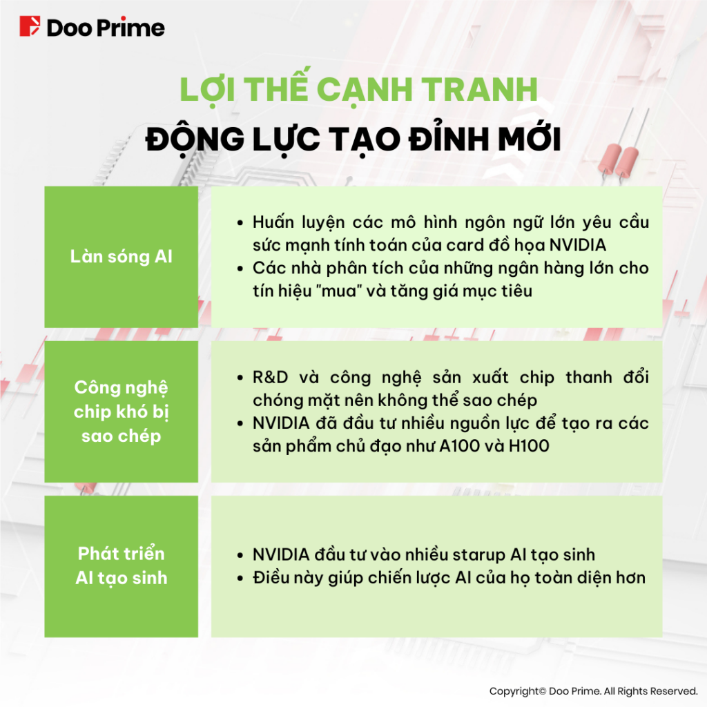 Trong khi NVIDIA cho thấy sự phát triển không có điểm dừng, các nhà phê bình cũng đang dấy lên những lo ngại về triển vọng tương lai của hãng. Trong bài viết này, chúng tôi sẽ phân tích những lợi thế đặc trưng của NVIDIA, cũng như những nguy cơ tiềm ẩn, từ đó giúp bạn đánh giá triển vọng trong tương lai và nắm bắt các cơ hội đầu tư hiệu quả.